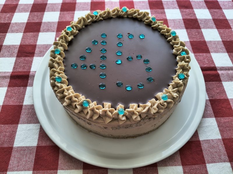 Do středu jsem nalila rozpuštěnou čokoládu s kouskem másla a tácem otáčela, aby se rozlila. Předtím jsem kruh uzavřela krémovémi pusinkami, aby mi čokoláda nestékala. „Rubíny“ jsou želé bonbony![]()