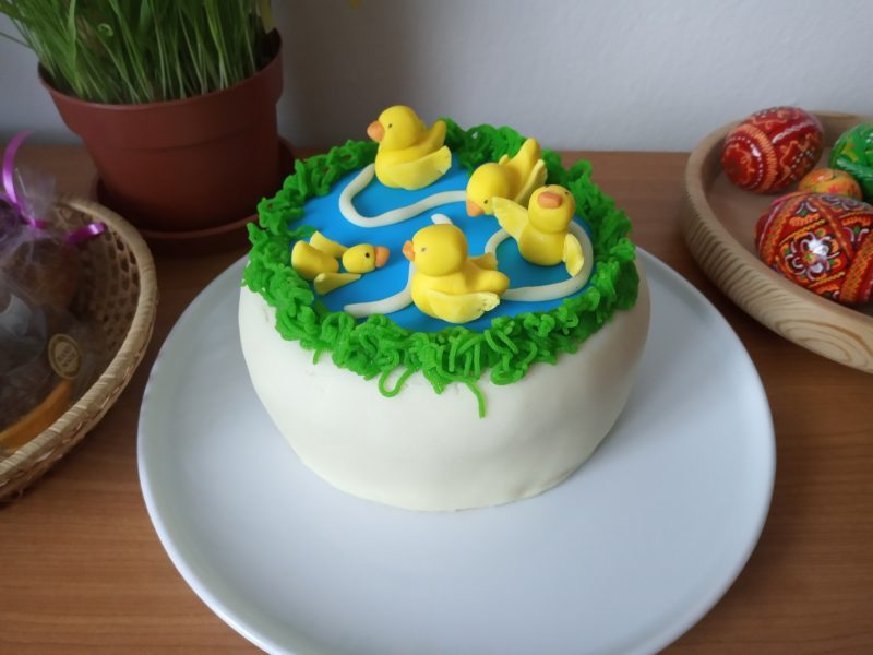 Chtěla jsem panence udělat šaty z marcipánu, ale v tom teple mi tekl pod rukama, tak přišel na řadu krém. Marcipán bude příště…
