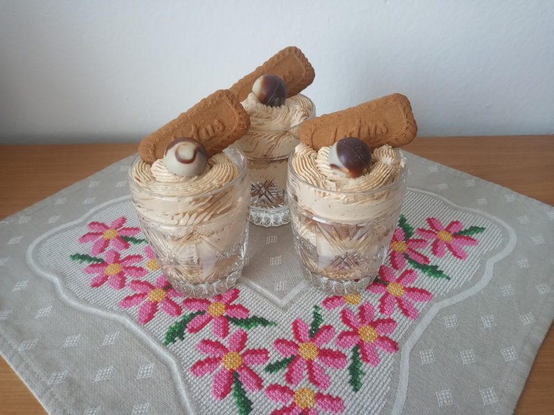 Sušenky Lotusky nalámané a vstvené s karamelovým pudinkovým krémem.