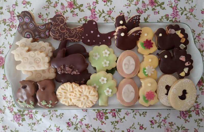 Pro inspiraci přidávám mé letošní pečení. Část jsem připravovala pro knižní akci, kterou jsem pořádala, část jsem rozdala známým. V jedné přepravce je naskládáno cukroví, které jsem potom zabalila školním dětem při exkurzi v knihovně – vajíčko, slepička a kuřátko.